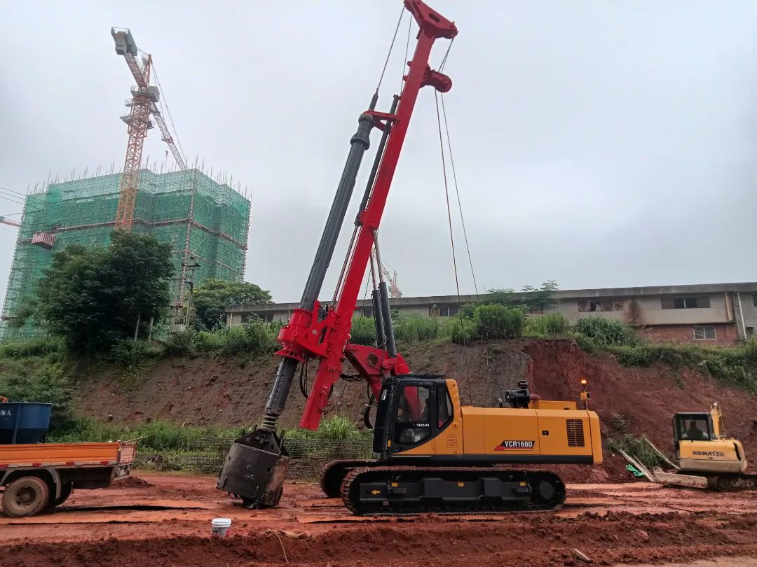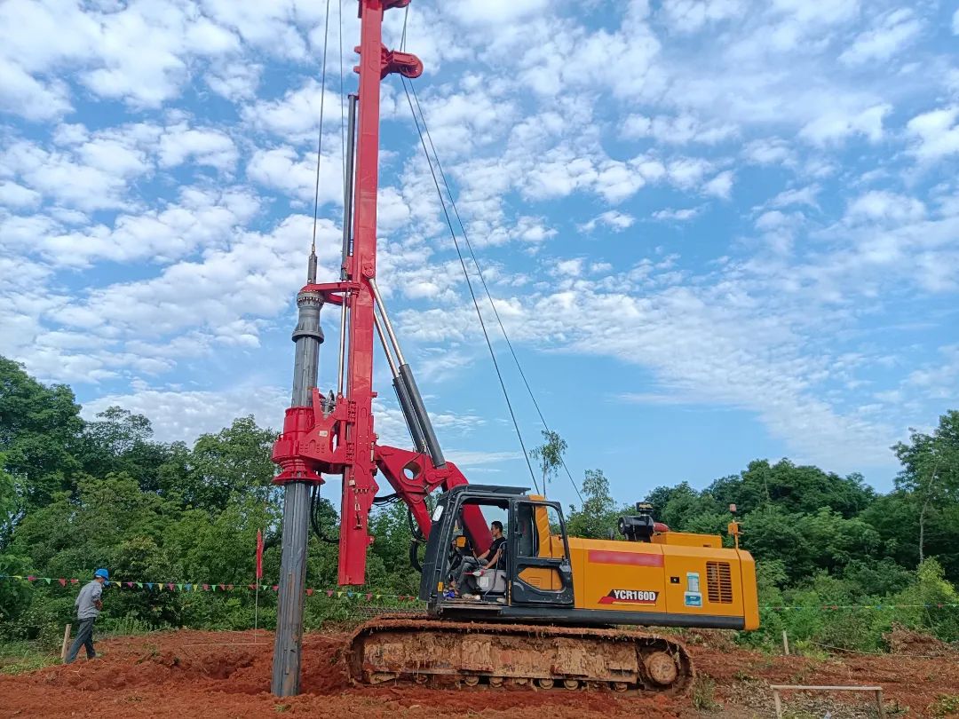 本次交付的玉柴YCR160D旋挖钻机是客户在城市基建施工中遇到特殊需求工程而要求定制的。该机器整车工作状态高度更低,重量更轻,钻孔直径更大,最大钻孔直径达到了2.2米。本次特高压电塔桩项目钻孔直径1.4-2.2米不等,单孔深度10米左右,玉柴YCR160D旋挖钻机凭着稳定高效的施工性能,得到了客户的高度认可。