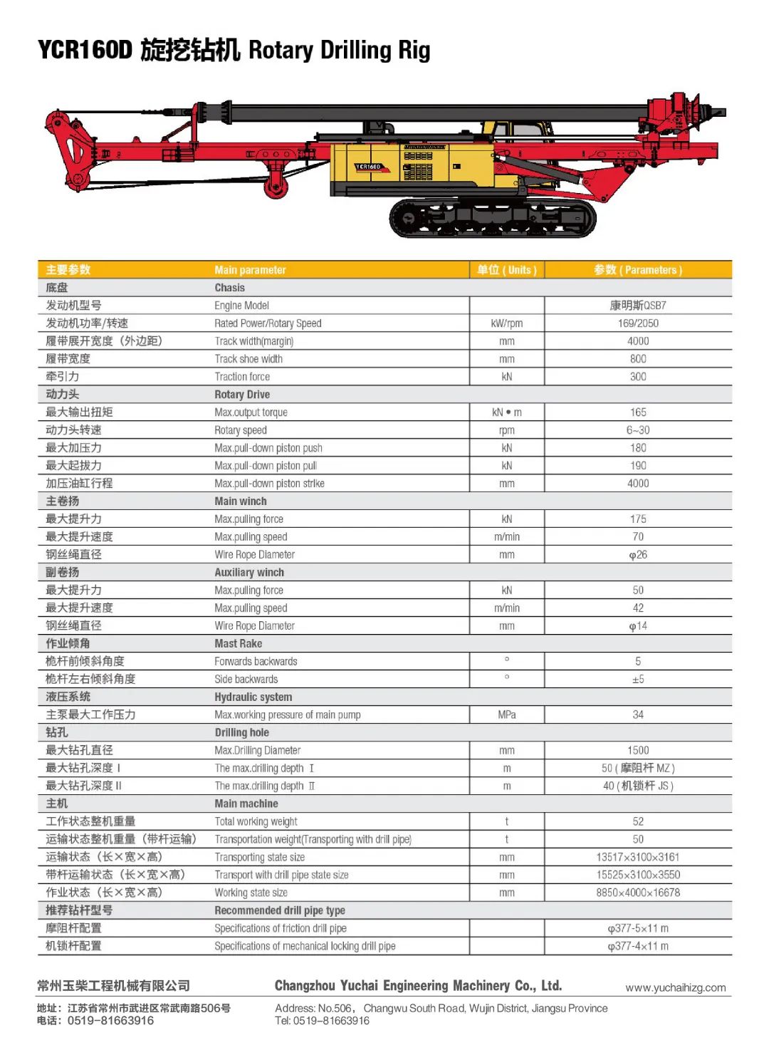 通过一周的施工了解到,定制款大大降低客户的成本,提高了收益。因电塔桩量多分散,转场次数多,乡下路窄,改制款YCR160D正好能解决这一问题,整机带杆运输,且短桅杆运输更便捷,能通过乡下道路,整机质量降低,极大的降低了客户的运营成本,为客户创造更大经济效益。