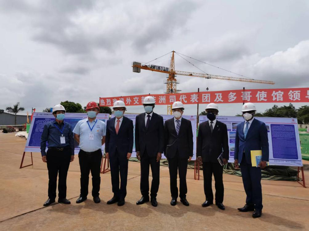 日前,外交部非洲司司长吴鹏一行在中国驻多哥大使巢卫东陪同下,到中铁十四局集团承建的援多哥总统府维修扩建项目调研。
