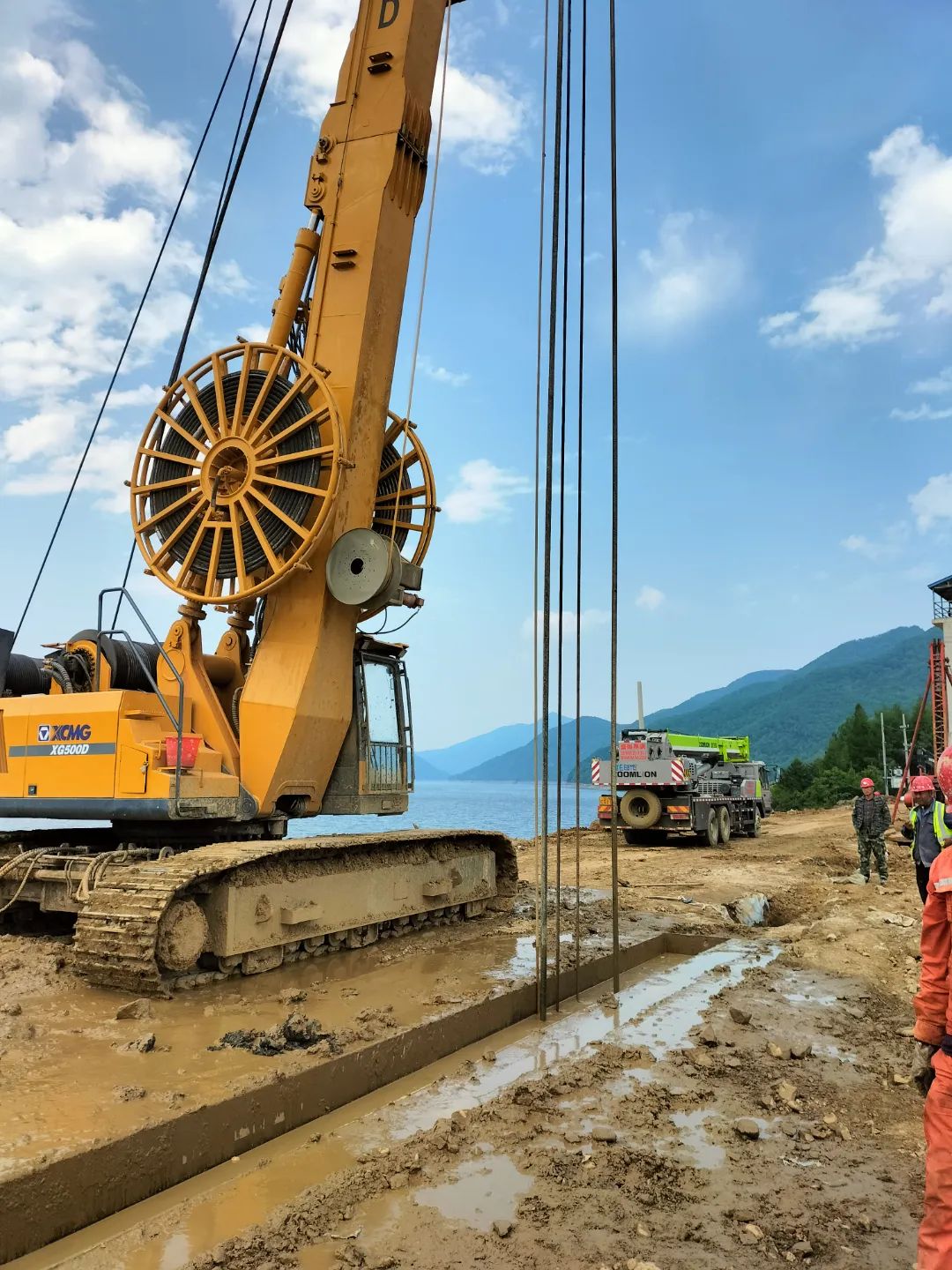 2022年7月4日,由北京振冲工程机械有限公司承建的湾龙背鱼塘护岸305米高程以下振冲碎石桩加固工程振冲碎石桩及塑性混凝土防渗墙工程顺利完工。