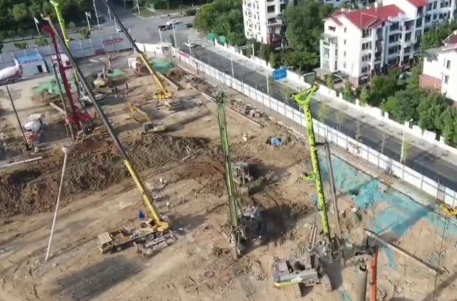 燃情七月,开工火热。走出南京地铁4号线徐庄站,机械作业声在耳畔此起彼伏,在徐庄高新区启缤精选商业中心施工现场,当地的专业化的桩基础施工企业——南京弘建建设有限公司的六台中联重科旋挖钻机轰鸣作响,正交错对岩层旋转钻孔,以更深、更稳、更准的高效施工,助力南京时尚新地标加速建设。