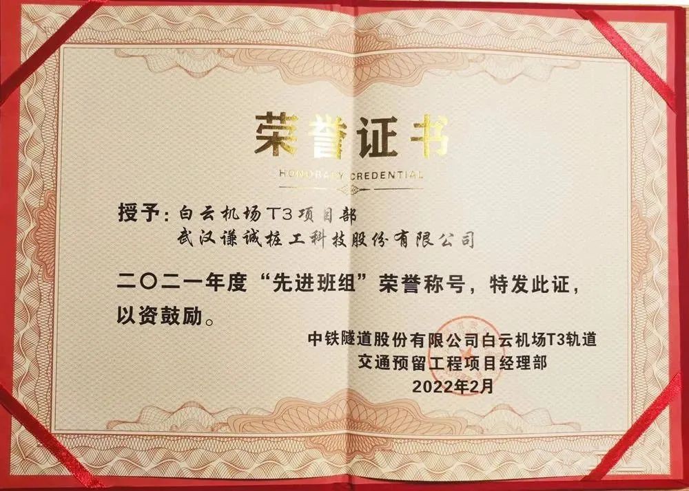 自承建芳白东项目以来,谦诚桩工项目部高度重视和配合总包方工作,赢得了业主及总包各方的认可,项目团队获评“2021年度先进班组”称号。