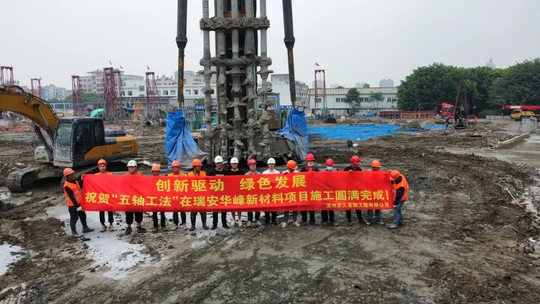 近日,由京久基础承揽施工的华峰新材料工业互联网项目基坑支护分项五轴水泥搅拌桩的顺利完工,标志着瑞安基坑支护工程正式开启高质高效、节能环保、绿色发展的新时代。