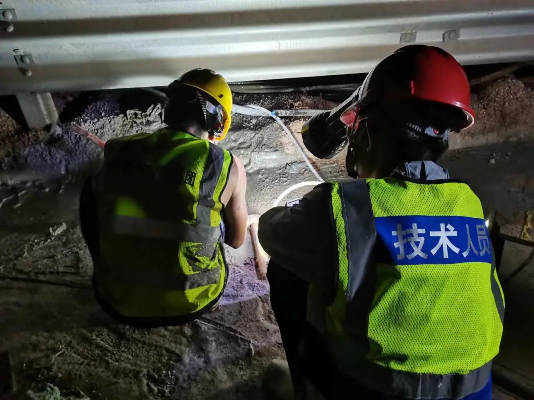 时间就是生命,面对复杂的抢修任务,该公司以雄信项目为依托,迅速从广东、浙江、四川多地抽调精干人员,成立韶关北环抢险项目部,目前已进场人员200余人,各类机械设备150余台套,人员两班倒、机械不停工,进行24小时不间断施工。施工内容包括路基注浆、边坡防护、土方清运、挡墙修复等,计划工期两个月。