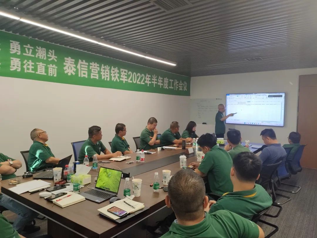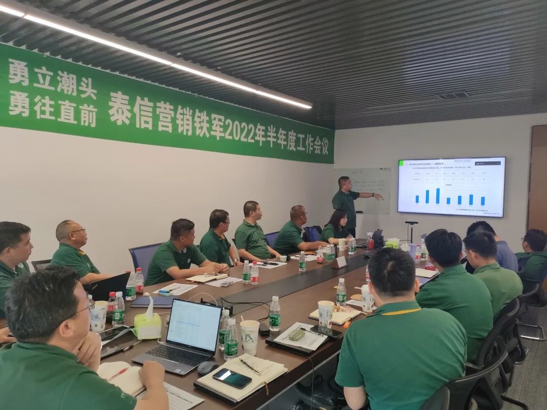神州大地八月飞火,泰信营销捷报频传,8月5日-6日,江苏泰信营销年中会议在长沙华良华天假日酒店圆满落幕,泰信营销公司总经理肖华安、副总经理盛伟明以及全体营销人员共聚一堂,就上半年的公司营销工作进行了回顾与总结,董事长辛鹏先生线上做出重要总结指示,对下半年的市场和行业发展趋势进行了展望和规划,由此,2022年市场营销攻坚战的冲锋号角已是嘹亮吹响。