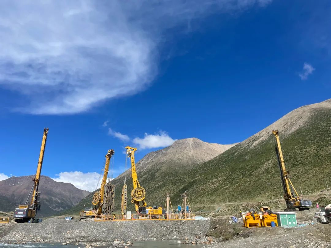 近日,西藏弄利措水库工程基础防渗墙正式开工,标志着项目进入工程关键期。工程现场一片忙碌,5台徐工金耸立在海拔4500米的高原,联合施工,向高原硬岩发起挑战。