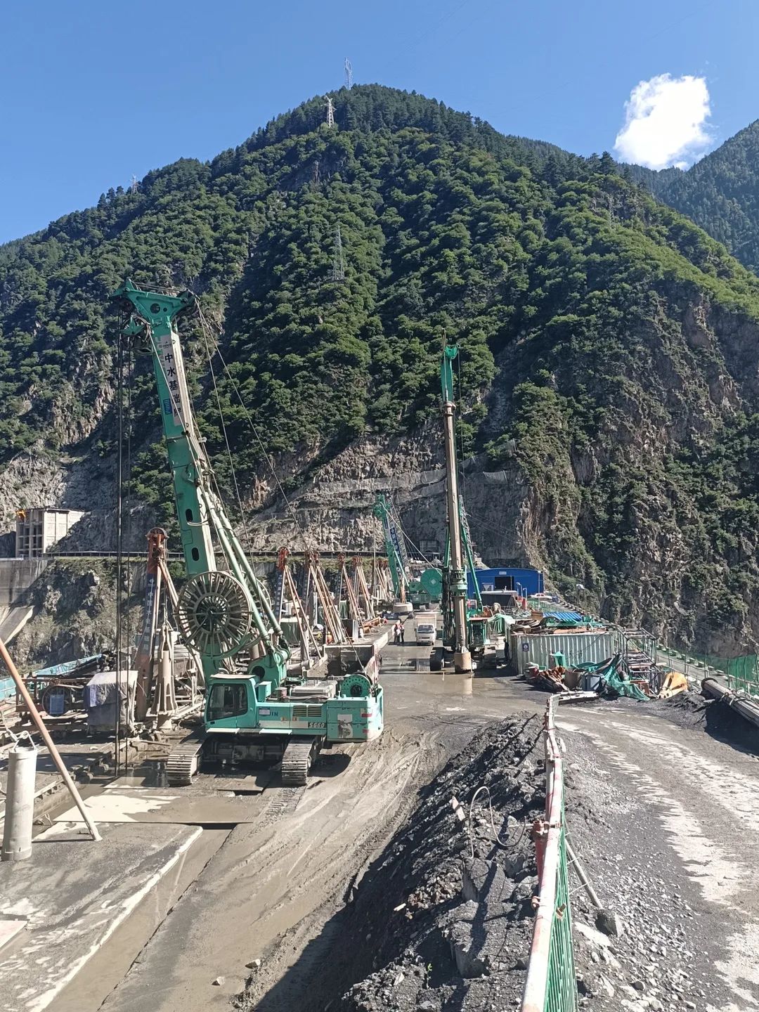 言归正传!近日,由中国水电基础局有限公司所承建的狮子坪水电站上正在进行一台高坝“心脏移植手术”,现场紧张且忙碌。金泰主力产品SX双轮铣、SG液压抓斗、SH旋挖钻机等设备一字排开,为确保“手术”进度,现场工作人员以及施工装备披星戴月24小时不间断施工,预计2022年10月大坝将重获“心”生,一颗崭新、坚实的“心脏”将守护大坝安全。