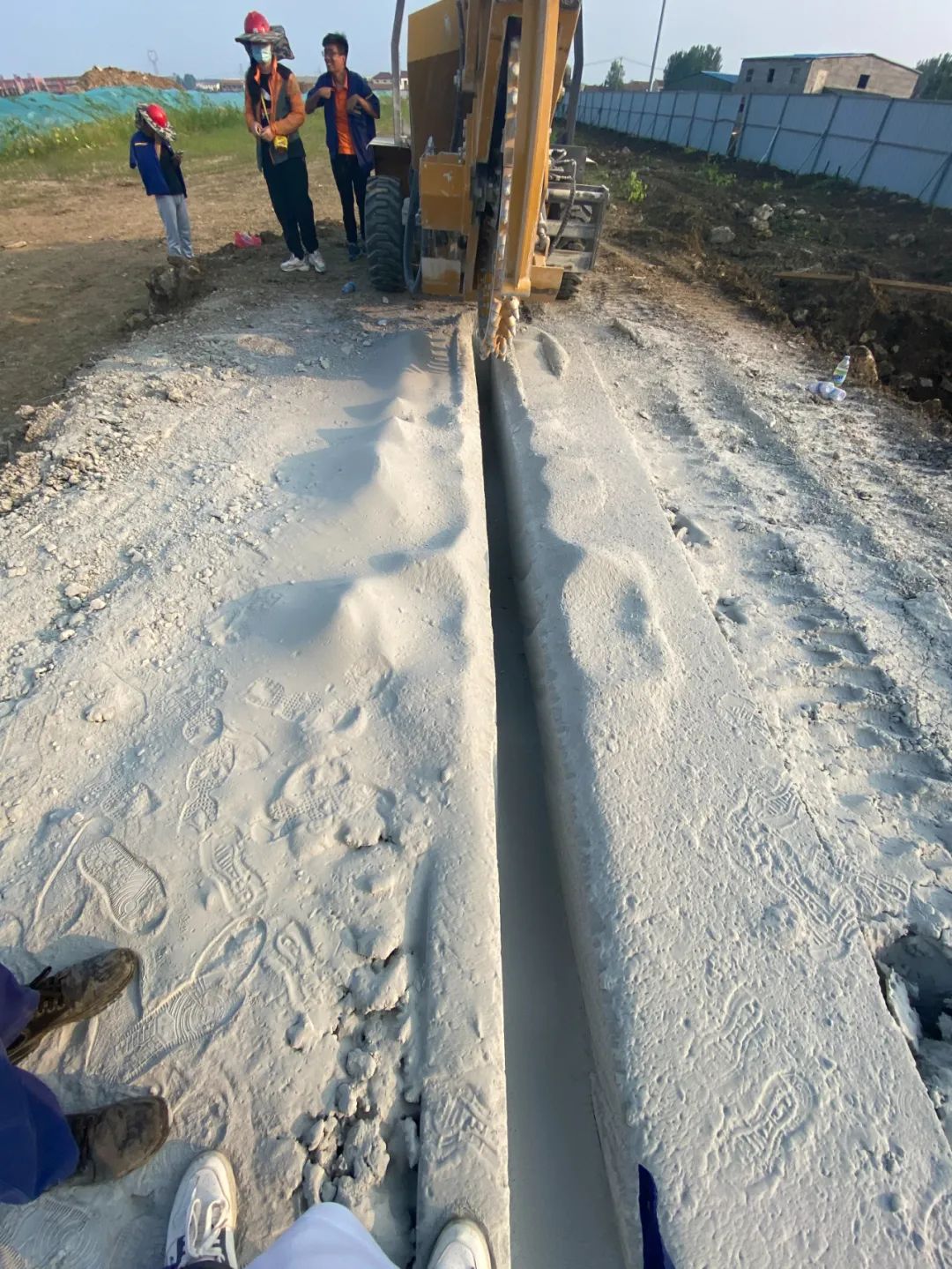 徐工基础新基地开沟长度单条约16米,共8条,徐工XMT550开沟机作业时只需要设定好路线,开沟机就可以自动完成开沟作业,省心省力。面对硬化路面,徐工开沟机施工效率达80-100m/h,短短十几分钟便完成了单条开沟作业。