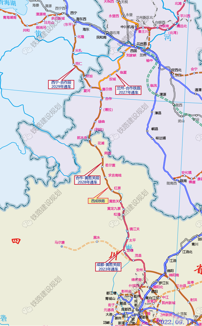 西宁(兰州)至成都铁路分段开通示意图