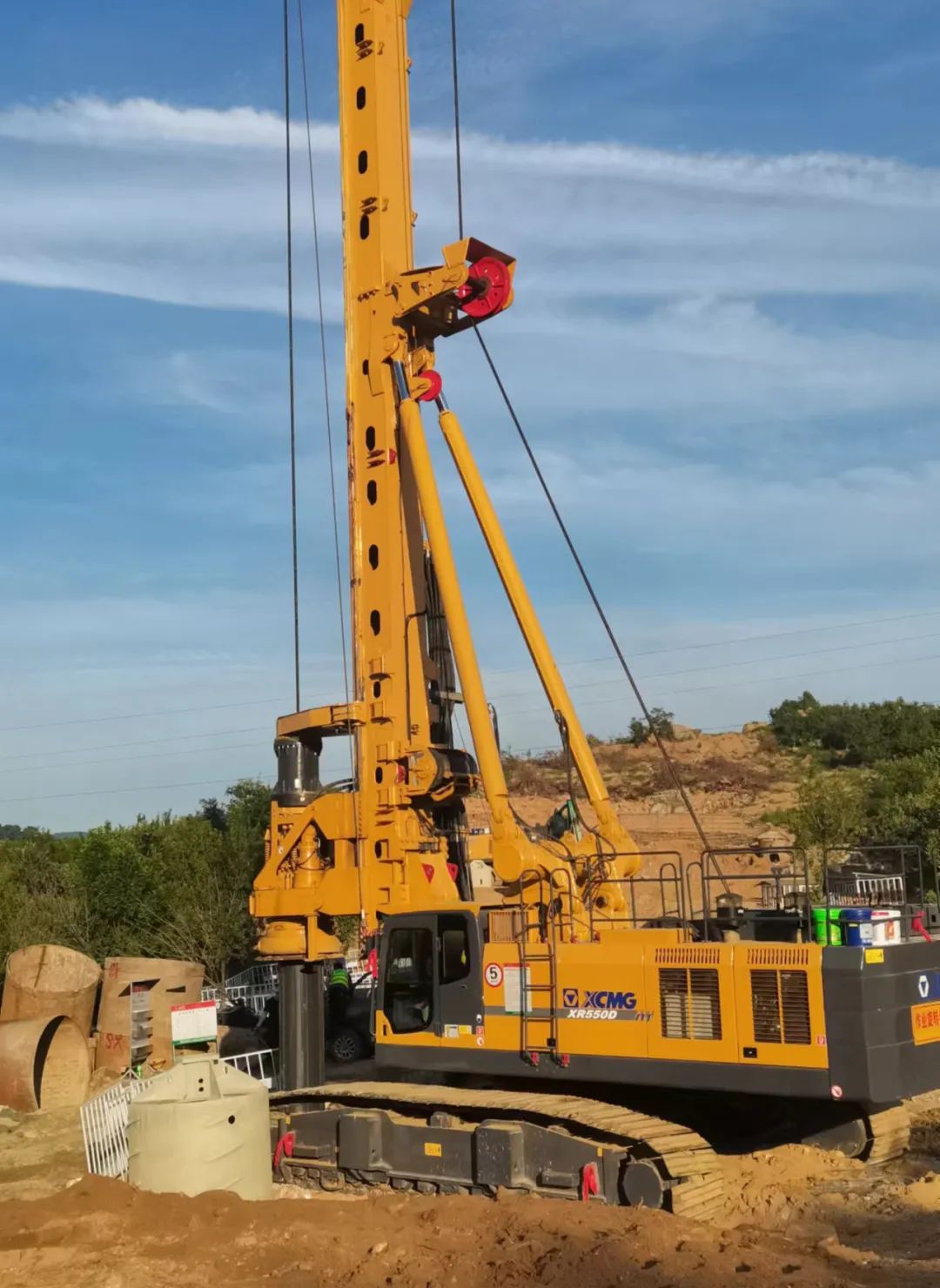 徐工XR550D旋挖钻机主要针对国内特大桥桩、高速铁路、高速公路等大型工程建设的市场需求,拥有超大钻孔直径、超深钻孔深度以及超强入岩能力,成孔快,垂直精度高,曾取出高1.5米的岩心,被用户评为徐工旋挖钻机中的“入岩利器”。