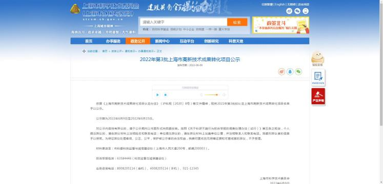 为了强化企业自主创新能力,促进科技成果转化,培育创新发展新动能,上海市科学技术委员会、上海市财政局、国家税务总局上海市税务局、上海市人力资源和社会保障局结合科技成果转化的新趋势、新要求,定期联合评选《上海市高新技术成果转化项目》。