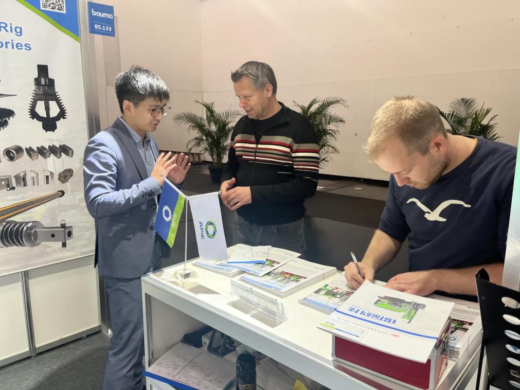 现场,陆英汇国际(APIE)展台也备受全球观展客户垂青,不少客户驻足洽谈,了解APIE推介产品,并提出了多种合作思路,为APIE与世界同业的合作提供了更多可能,同时也为泰信机械以及中国桩工品牌深化拓展全球市场搭建了更好的平台。