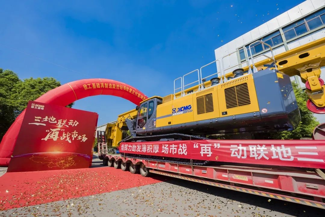 徐州、重庆、广州三个基地的徐工再制造旋挖钻机联动发车