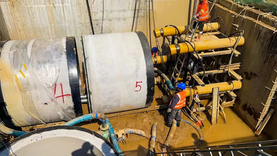 本次参建的徐工顶管机通过优化刀盘布局,提升破岩效率,解决刀盘易卡死、机头上扬或抱死等一系列施工难题。针对施工中渣石沉积、管道摩阻力大等问题,徐工顶管机进排泥系统可实现内外循环、旁通、外供水、直排五种泥浆循环模式。