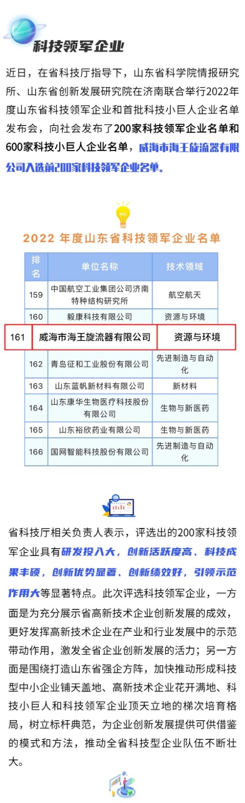 海王公司入选2022山东省科技领军企业