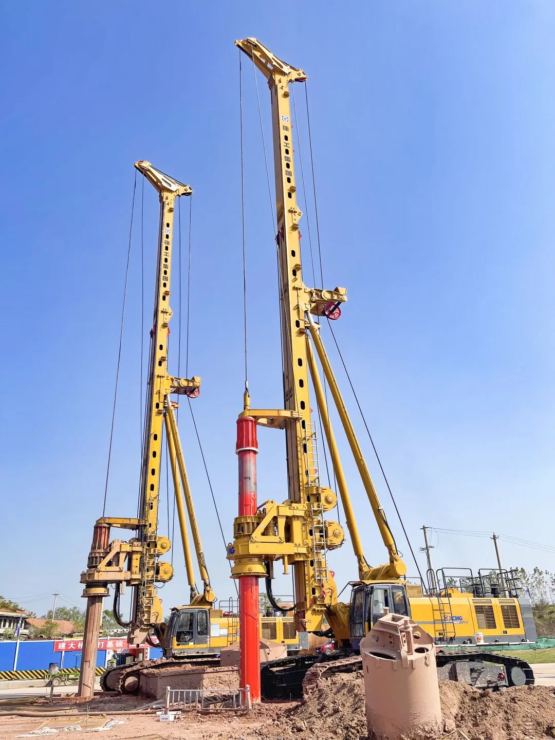 在湖北省鄂州市,离江边约50米的场地上,3台XR580HD旋挖钻机发出轰鸣声,此处正是双柳长江大桥南岸主塔工地,徐工旋挖钻机向海底硬岩进发,用稳固的桩基底盘来“拽”住桥面。