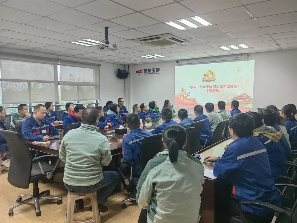 为深入学习贯彻党的二十大精神,让党的二十大精神更加入脑入心,11月18日下午,常州玉柴开展了“学习二十大精神 凝心聚力谋发展”主题活动,常州玉柴全体员工参加了本次活动。活动内容包括学习二十大精神、二十大党建知识竞赛、观看红色电影《建军大业》等。