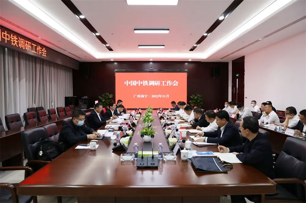 中国中铁总裁助理兼规划发展部部长耿树标,总部有关部门负责人,中铁交通班子成员及高管、相关部门负责人参加调研。