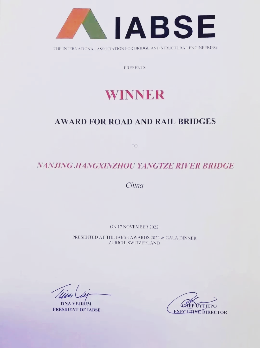 近日,国际桥梁与结构工程协会(IABSE)举办的2022年度IABSE全球项目与技术奖评选活动在瑞士苏黎世落下帷幕。由中国中铁参建的南京江心洲长江大桥荣获“杰出桥梁结构奖”,参建的平塘特大桥荣获“杰出基础设施奖”;设计承建的沪苏通长江公铁大桥,承建的张吉怀铁路酉水大桥、广州海心桥、淠河总干渠渡槽桥,以及参建的克罗地亚佩列沙茨大桥获提名奖。