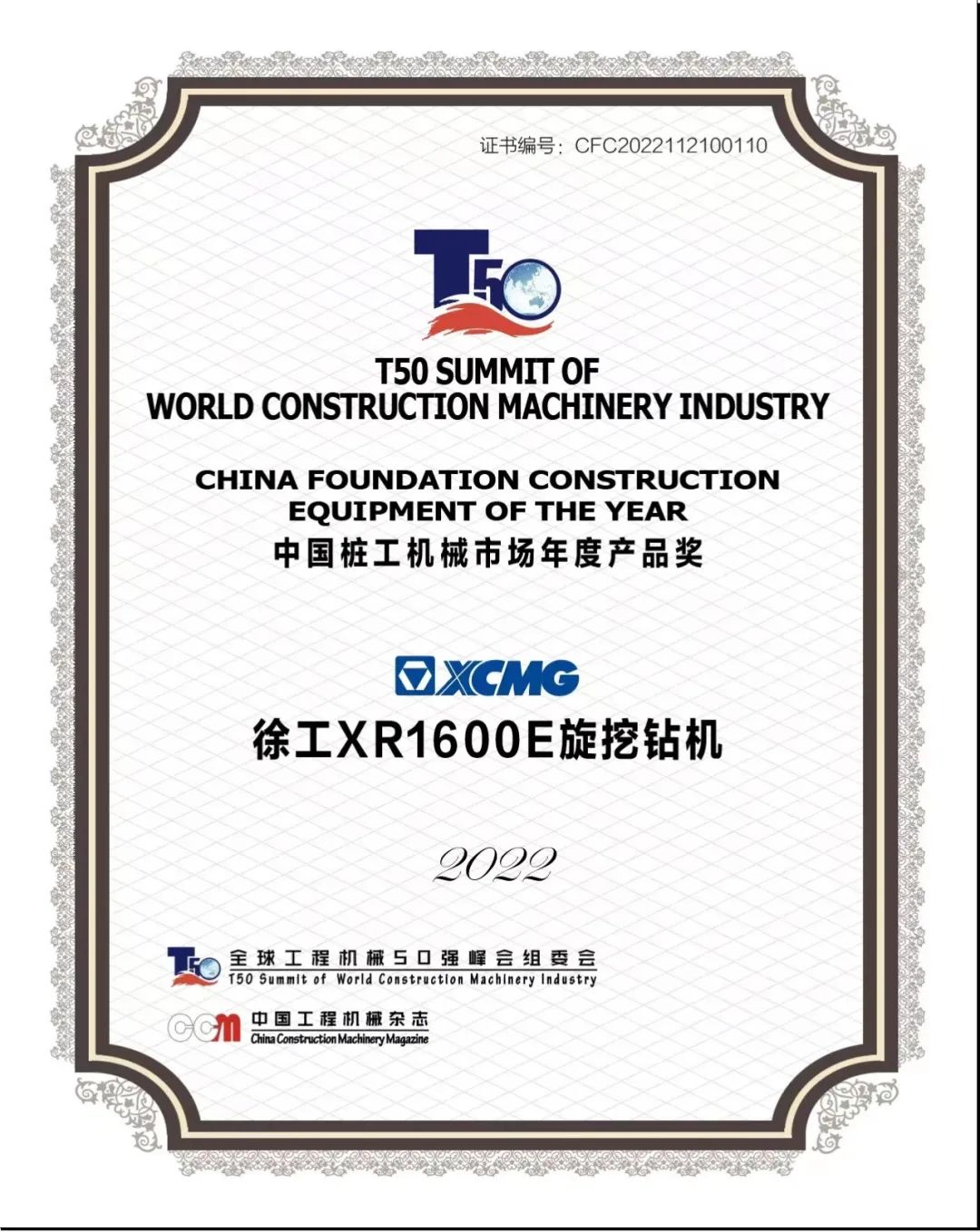近日,行业瞩目的“全球工程机械50强峰会”在上海隆重召开,徐工XR1600E旋挖钻机荣获“中国桩工机械市场年度产品奖”。