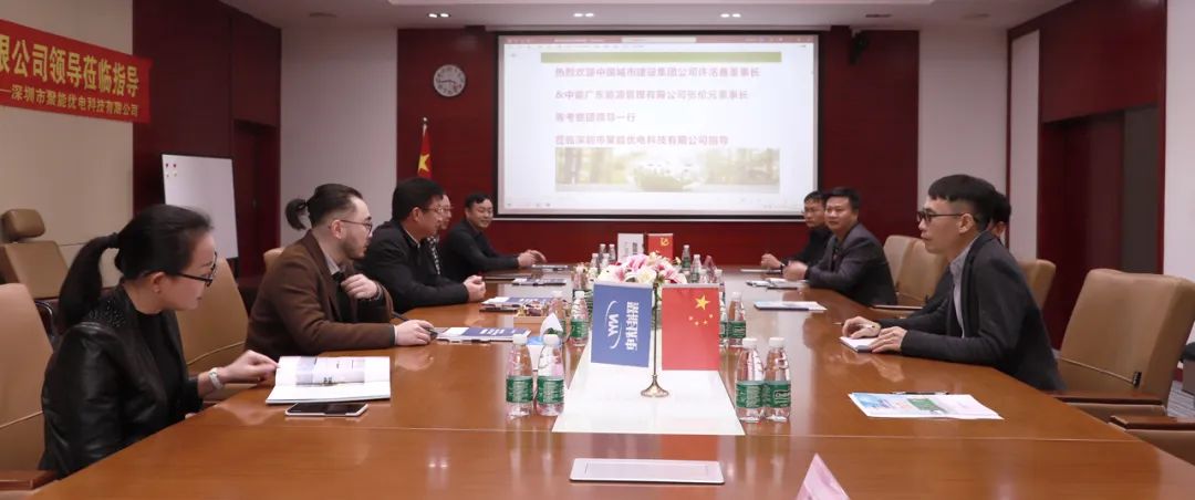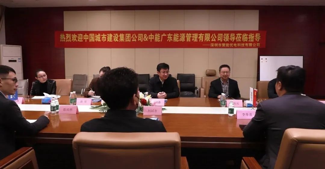 12月6日,中国城市建设集团董事长许洺鑫、高级顾问吴红燕,中国城市建设集团董事兼中能广东能源管理公司董事长张伦元,董事长助理陈哲,办公室主任罗伟考察团一行在深圳市聚能优电科技有限公司副董事长刘园方、技术副总陈欣然,营销副总李东喜、技术总监黄家华等相关负责人的陪同下,到深圳市聚能优电坪山生产基地进行考察,双方就“双碳建设,节能减排”战略项目等合作之可行性进行深化交流,为实现优势互补,协同发展达成初步共识。