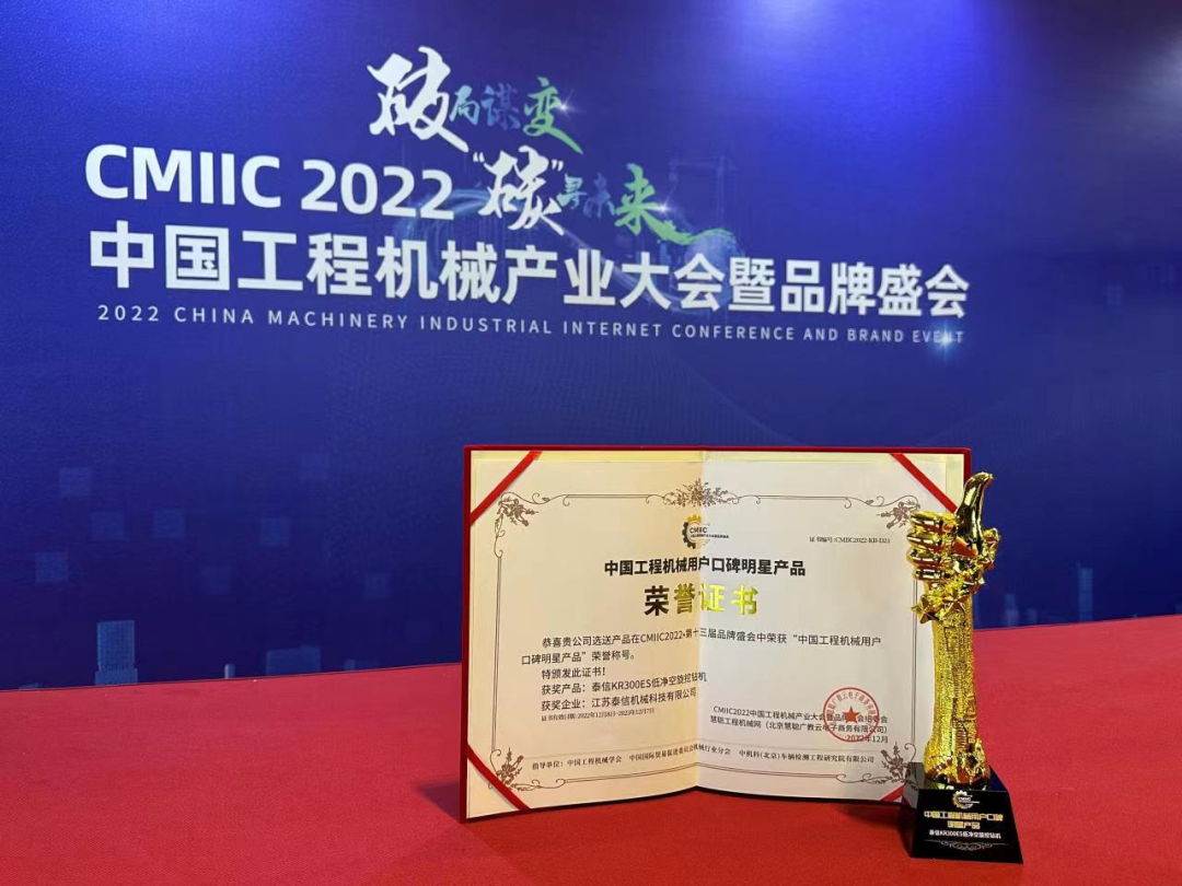 12月20日,以“破局谋变 碳寻未来”为主题的CMIIC2022中国工程机械产业大会暨品牌盛会在长沙隆重举办。会上,“2022中国工程机械行业明星产品”荣誉榜单重磅揭晓,泰信机械KR300ES低净空钻机上榜,荣获“中国工程机械用户口碑明星产品”荣誉称号。此次评选历时6个月,经自主报名、网络投票、用户打分、专家评审四大环节的层层选拔和评审,泰信再受行业用户及专家的高度认可,进一步彰显强大的创新能力和市场影响力。