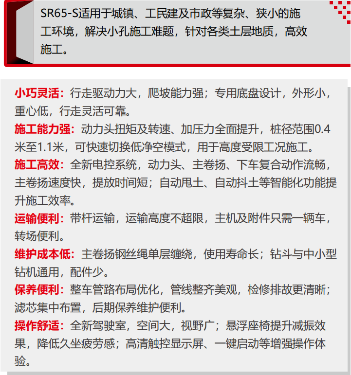 SR65-S作为北京三一智造新推出的国四机型,由于其体积小、重量轻、转场便捷、高矮双模、施工高效的特点,一经推出,就迅速成为风电项目中小桩施工的主力机型之一。