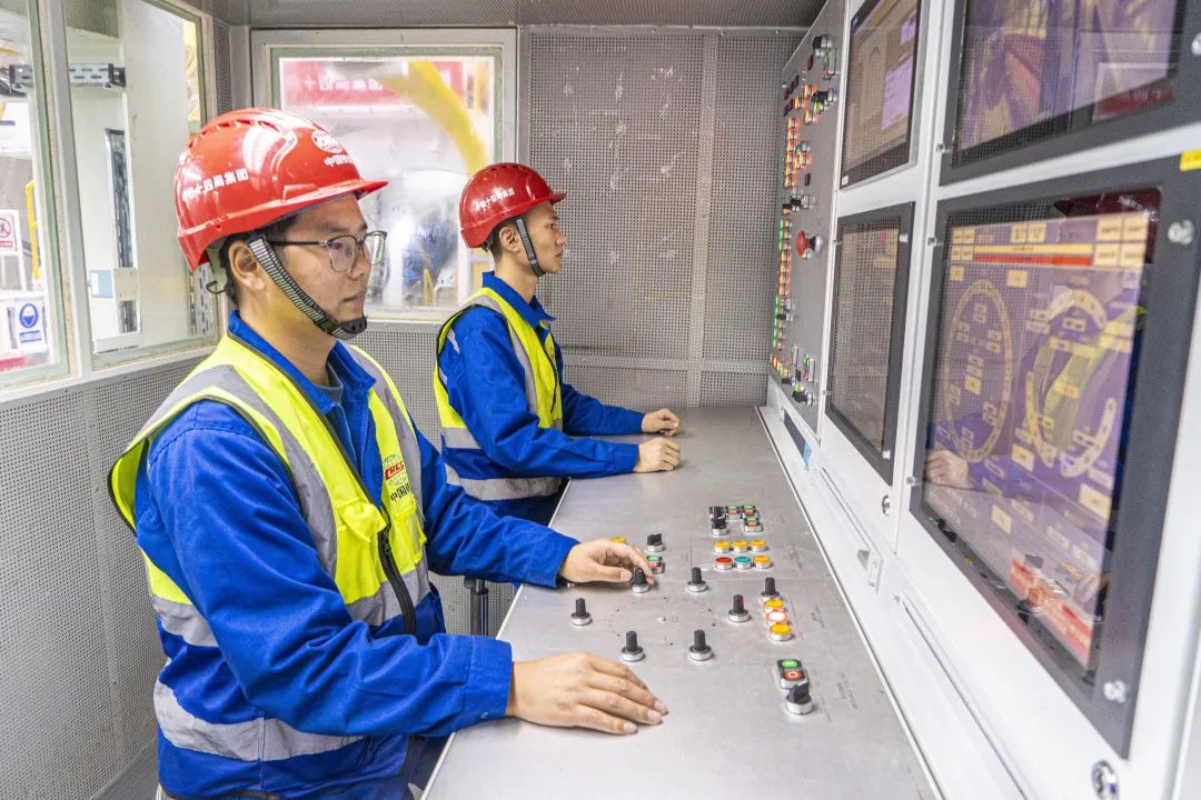 据介绍,该隧道是目前国内施工环境和建造难度较大的超大盾构隧道之一。长距离穿越泥质粉砂岩层,承受最大水土压力5.2巴,盾构段始发最浅覆土9.1米,不足0.7倍洞径,为超浅覆土始发接收;盾构机掘进将两次穿越破碎带、两次穿越珠江航道、长距离穿越泥岩、泥质粉砂岩等地层,极易产生刀盘结泥饼、开挖仓滞排,对掘进参数控制要求很高。
