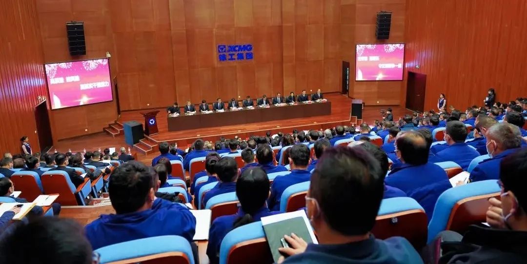 徐工机械总裁、党委副书记陆川作题为《高质量 控风险 世界级 稳增长 以内涵式高质量发展开启珠峰登顶新征程》的工作报告