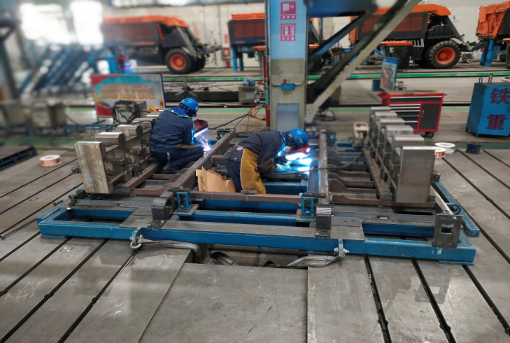 即将出口沙特的一台拱架台车春节假期前刚刚上线装配,班组一开工就投入生产。
