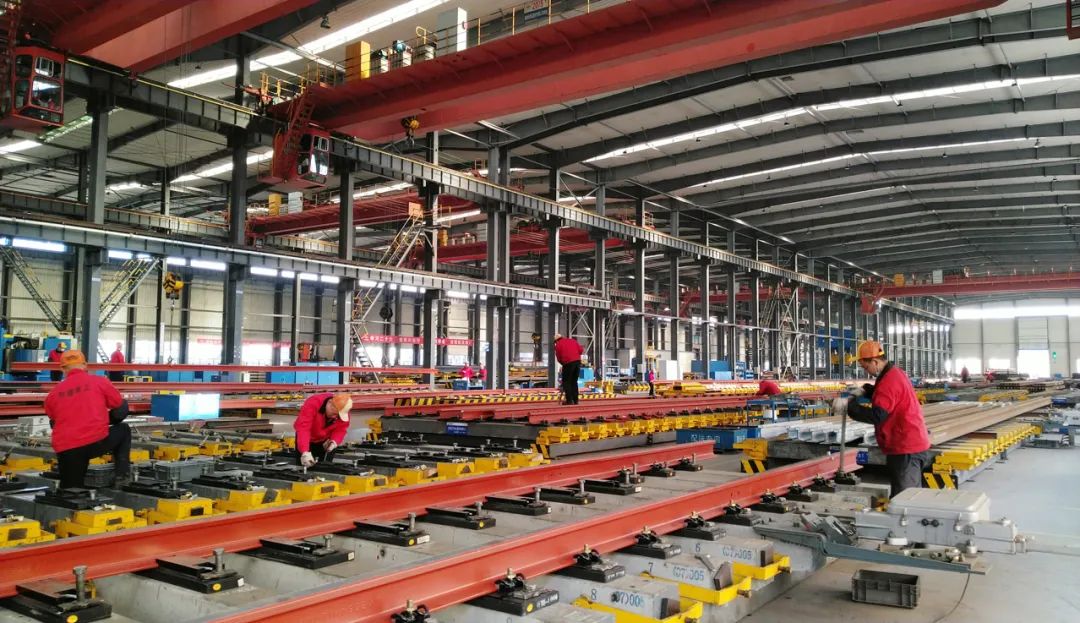 道岔分公司生产车间内,组装班的员工们正加紧组装应用于某城际铁路项目的客运专线道岔。
