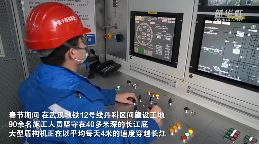 春节期间,在武汉地铁12号线丹科区间建设工地,90余名施工人员坚守在40多米深的长江底,大型盾构机正在以平均每天4米的速度穿越长江。新华社以《国内最长地铁环线越江施工“不打烊”》为题进行了报道。