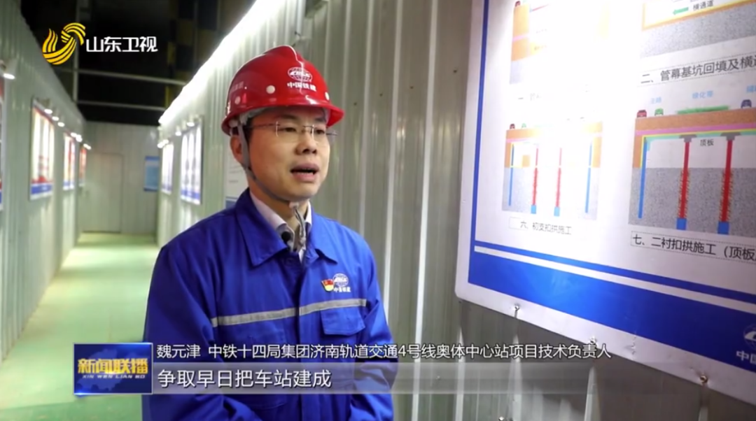 近日,山东卫视聚焦济南轨道交通4号线建设情况。中铁十四局隧道公司承建的奥体中心换乘站为济南地铁4号线与济南地铁3号线的换乘车站,是济南第一座超浅埋全暗挖车站,也是全国第一次采用“横向洞盖法”施工的车站。