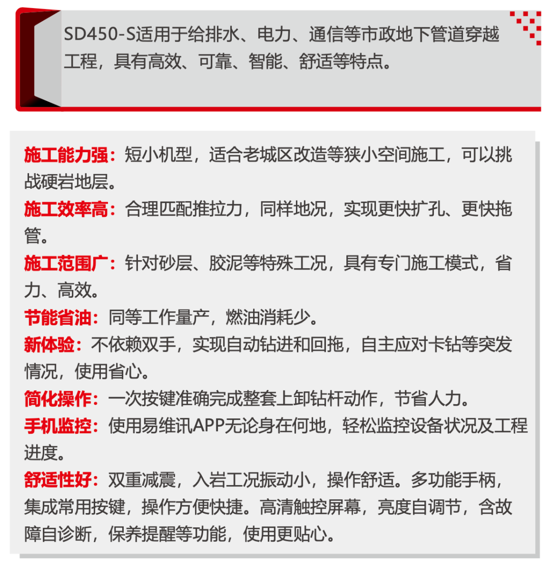 客户使用反馈评价SD450-S同等吨位机器中,扩孔施工效率高,操作舒适,得到客户高度认可。