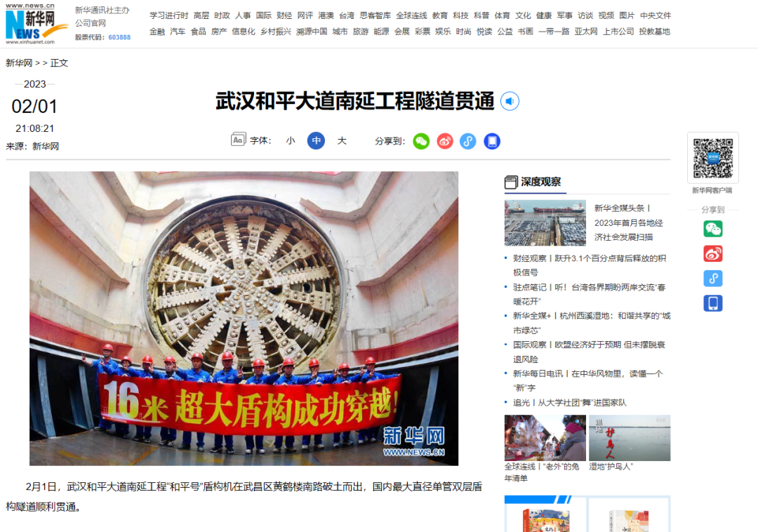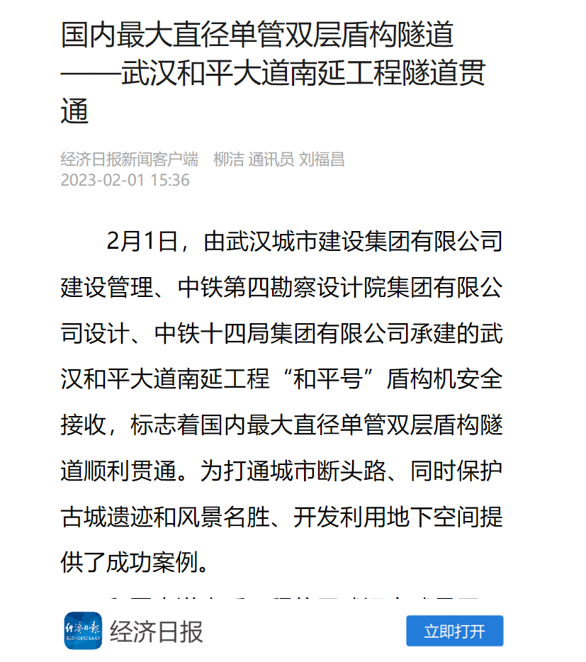 最大直径单管双层盾构隧道