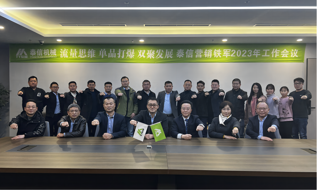 2月13日,泰信机械董事长辛鹏、营销中心总经理肖华安、副总经理郭丙锋、运营顾问杨峥嵘、挖机属具事业部副总经理魏金凤、泰恒基础总经理叶安平、泰程基础总经理曹宸铭及泰信全体营销代表在陆英汇国际会议室顺利召开了2023年国内营销工作会议。