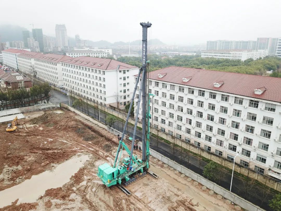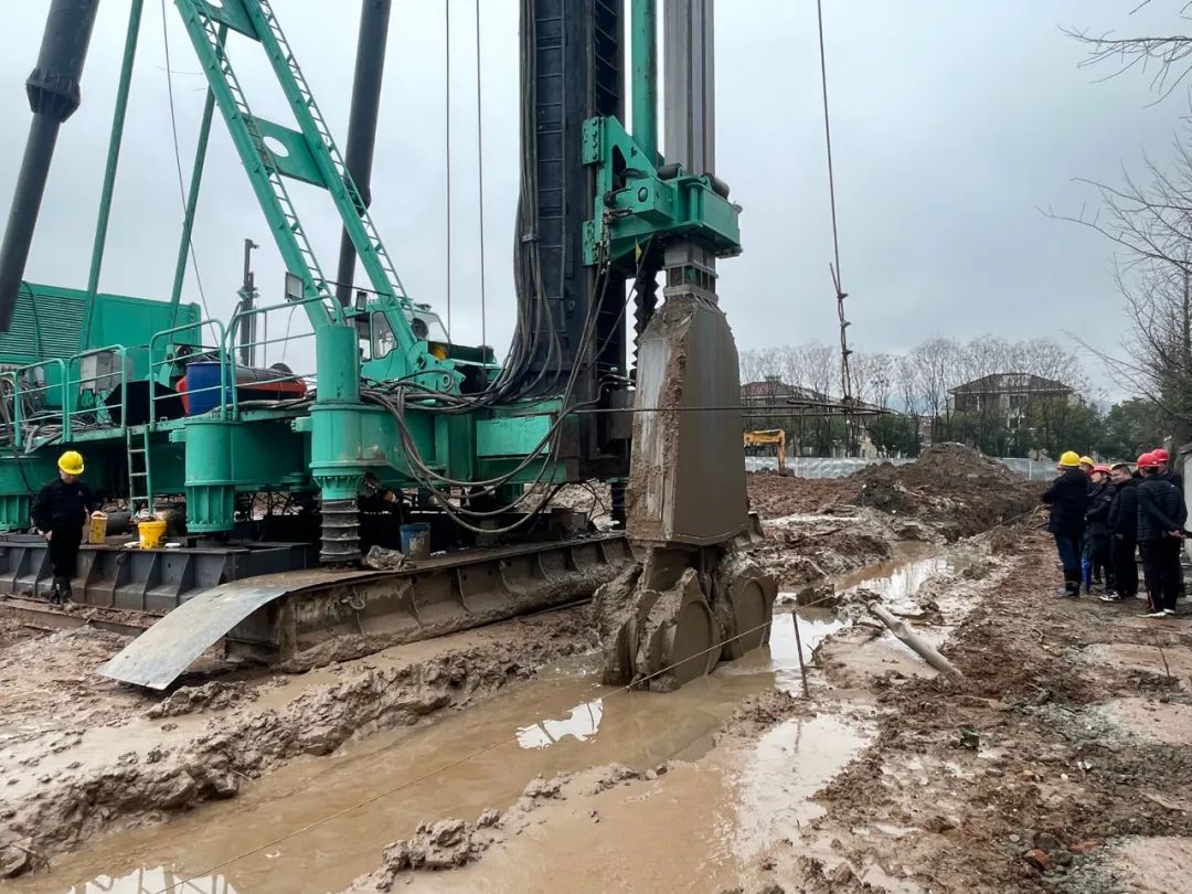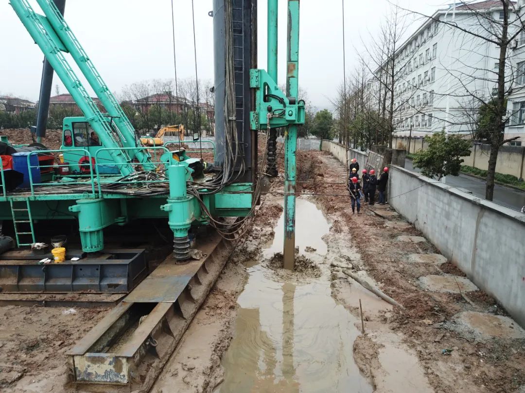 在浙江省湖州市安吉县未来科技城南片区基础配套设施建设项目一期(财富中心)施工项目现场,上工机械MS45E双轮搅拌钻机在施工地下等厚度水泥土止水搅拌墙取得骄人战绩,高质高效,引得施工方一众好评。