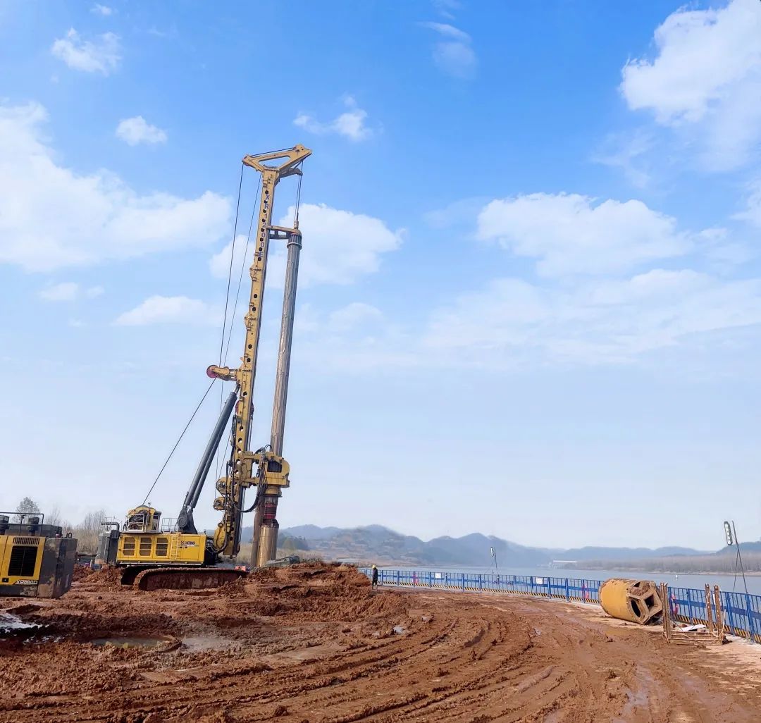 徐工旋挖钻机自去年12月中旬进场以来,高效展开施工工作。从项目方了解到,XR400E和XR460E旋挖钻机,单机每天最多能够完成三根围堰桩的施工,面对硬岩也毫不吃力。现场地质状况复杂,5台徐工旋挖钻机在全天施工情况下耗时不到十天,完成了30根围堰桩的施工。