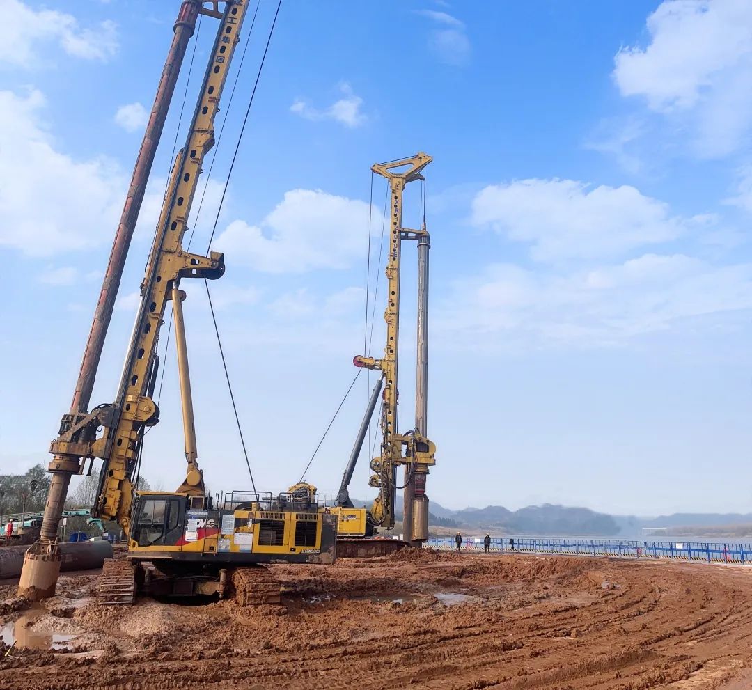 近日,成达万高铁嘉陵江特大桥项目现场一片繁忙,徐工5台旋挖钻机集结项目现场,以千钧之力向下夯基,助力一座跨江大桥的拔节而起!