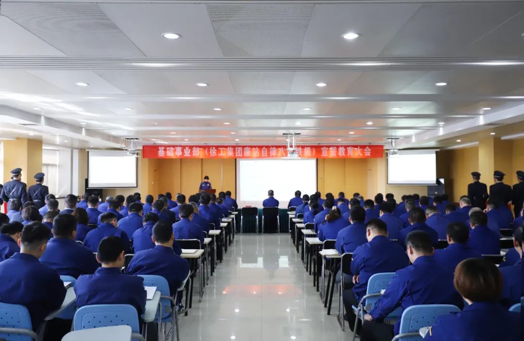 3月14日,基础事业部召开《徐工集团廉洁自律八条铁规》(以下简称《八条铁规》)宣誓教育大会,100余名在徐党员干部和关键、热点岗位人员参会,学习相关文件及《八条铁规》原文,全体参会人员共同宣誓并签订《八条铁规》承诺书。