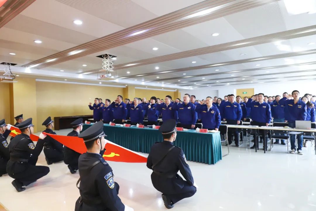事业部领导班子带头作出承诺、发起号召,全体与会人员面向党旗、国旗庄严宣誓,并签订《八条铁规》承诺书。
