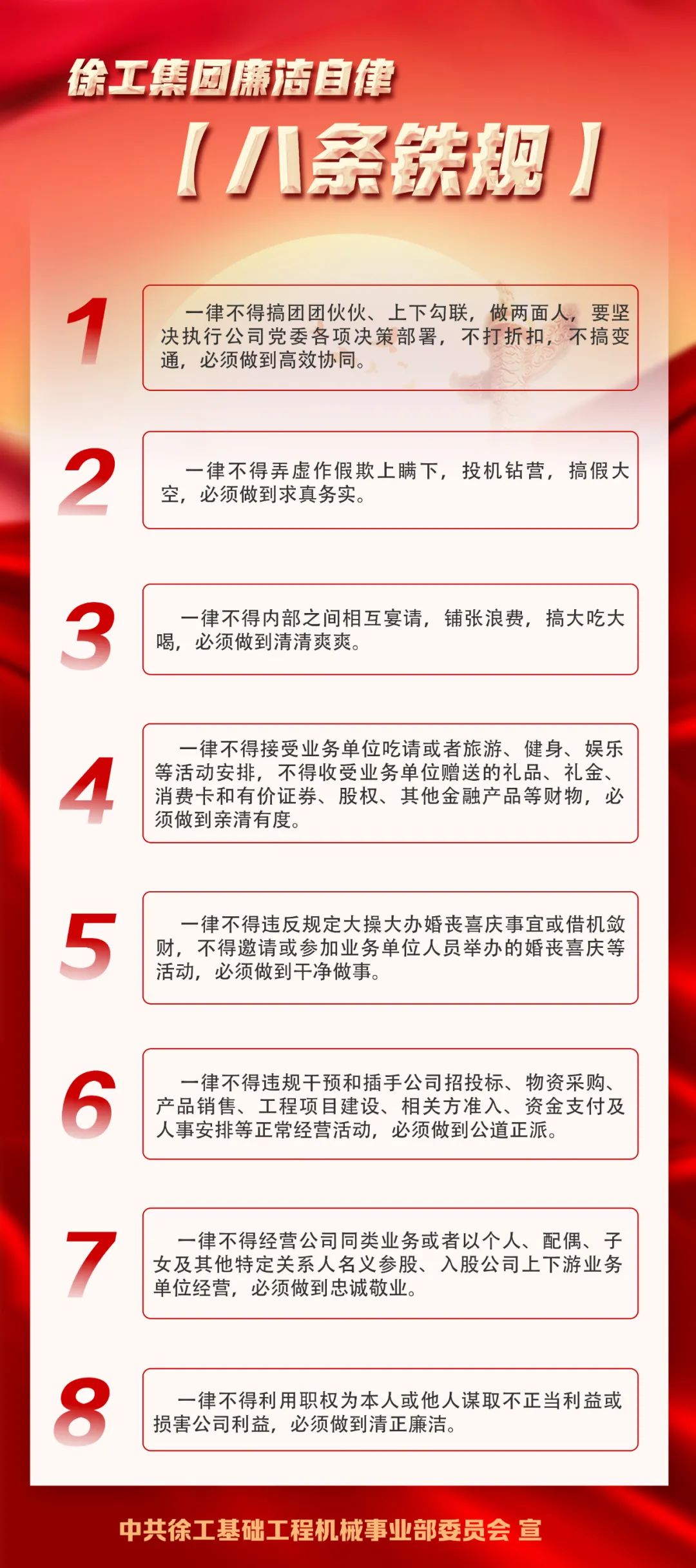 《徐工集团廉洁自律八条铁规》