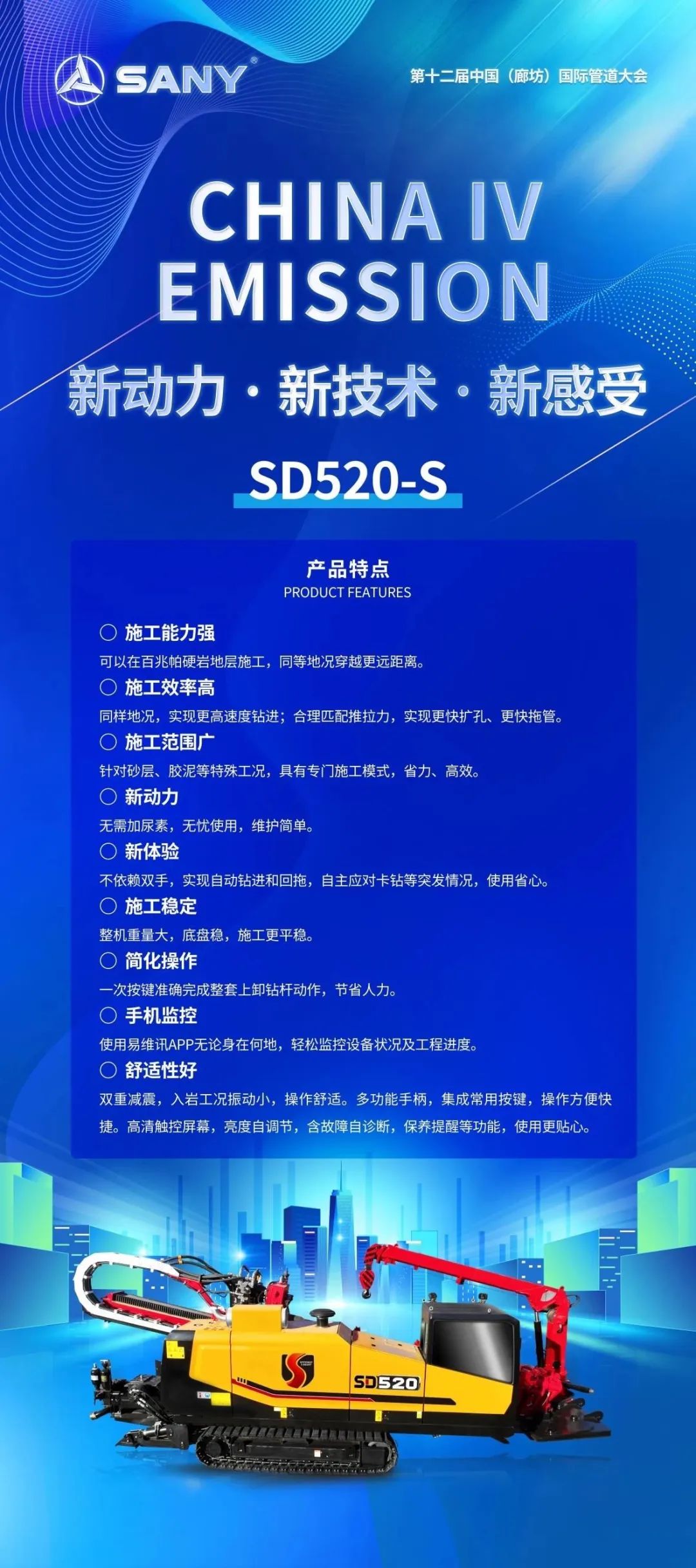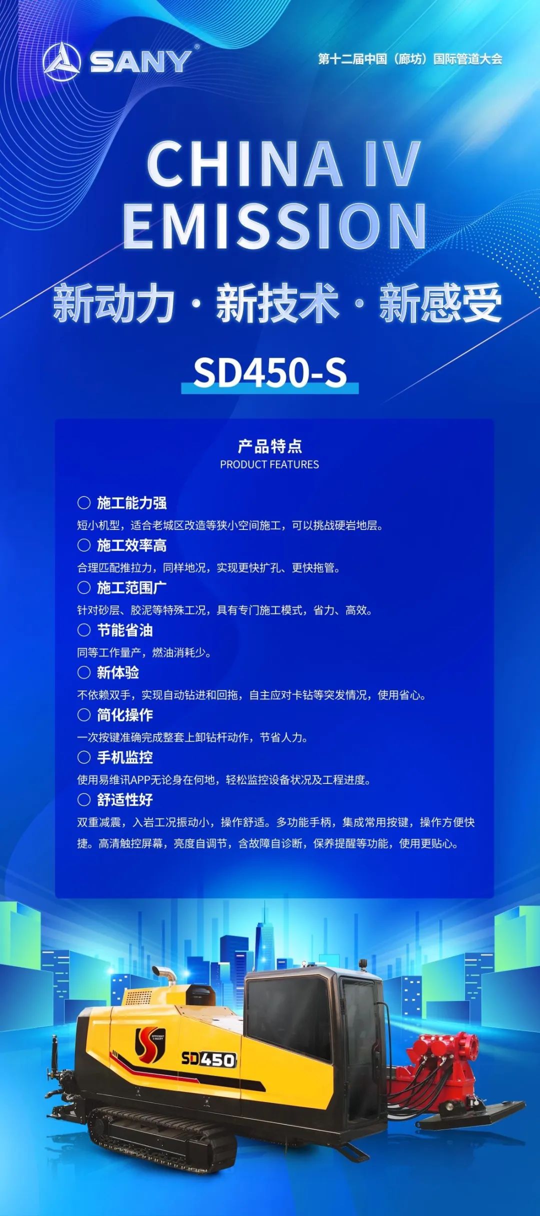 北京三一智造新上市的国四SD450-S、SD520-S水平定向钻亮相第十二届中国国际管道大会,并获得行业专家的肯定、客户朋友的青睐。