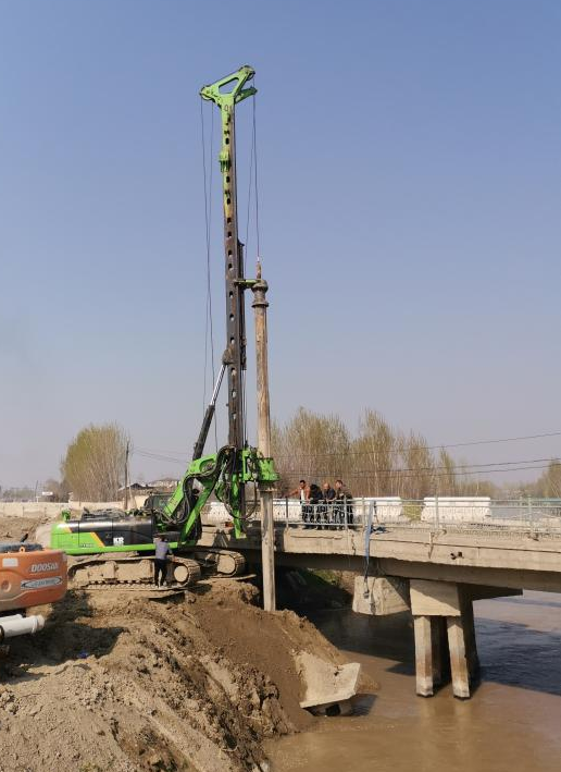 泰恒基础根据自有条件和当地物资条件,制定全护筒施工工艺。护筒深度20米,同时利用当地地层特点采取换填淤泥的加黏土造施工平台,顺利完成施工,本次施工引起当地政府重视,并吸引Наманган вилоят телеканали电视台到现场实地采访,当地民众纷纷赞誉中国施工速度,泰恒基础因地制宜积极提供合理施工工艺,解决了当地基础交通建设困境。