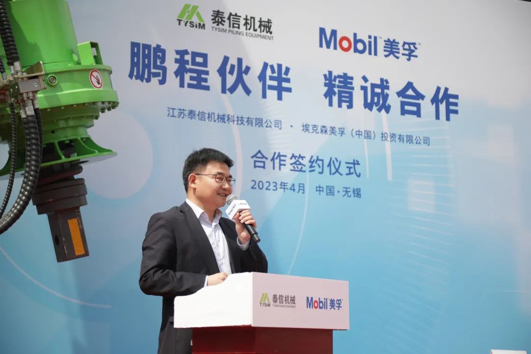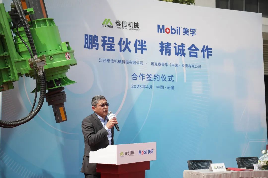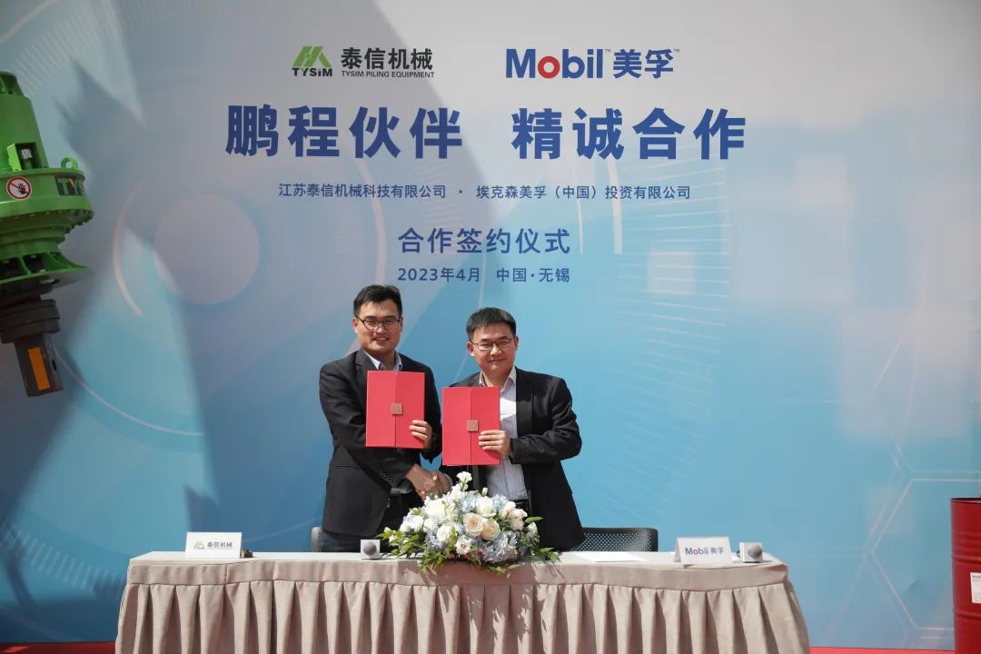 对于泰信机械这样的专业桩工企业而言,优质、高效的润滑产品是帮助其设备持久稳定运行的关键。埃克森美孚作为专业润滑领域的行业领先者,一直为泰信机械提供高性能润滑油产品。此外,埃克森美孚也将进一步为泰信机械提供集高效节能油品、专业润滑服务和循环周转包装三位于一体的全面绿色润滑解决方案,帮助其实现节能减排、减污降碳的多重目标,从而更快、更好地跑出绿色转型“加速度”。