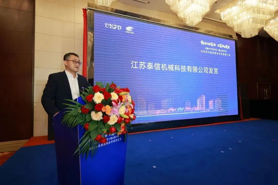 活动现场,多家企业轮番登台推介,江苏泰信机械科技公司董事长辛鹏也现场展示了泰信的雄厚研发和销售实力,经开区(头屯河区)工信局慧眼识英雄,当即拍板与江苏泰信机械科技公司现场签订了投资协议,携手合作开启全新征程。