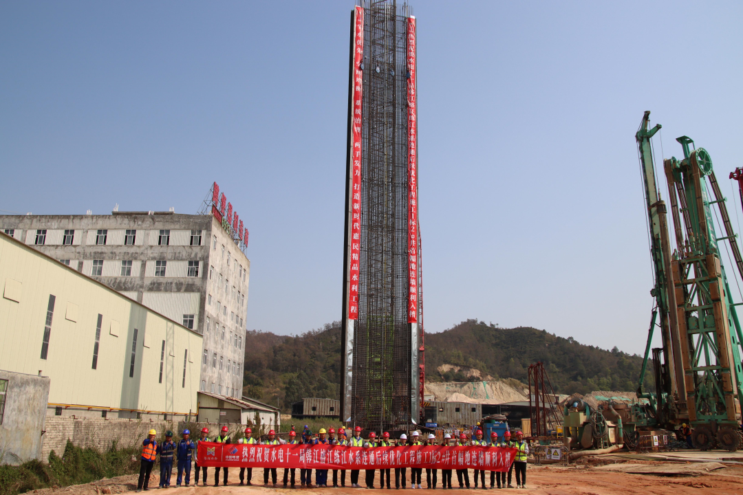 GX02工作井为输水干线古巷分水口至关埠取水口段的一部分,是全线最大的标段。为打造粤东供水项目建设标杆工程、示范工程,该工程坚持“严、紧、细、实”生产理念,以质量与安全管理齐头并进,不断优化施工方案,加大资源投入,最终采用“钻+抓(金泰SG70)+铣(金泰SX40)”结合施工工艺,先后完成首幅钢筋笼入槽,全线首个支洞进洞等重要工程节点任务。