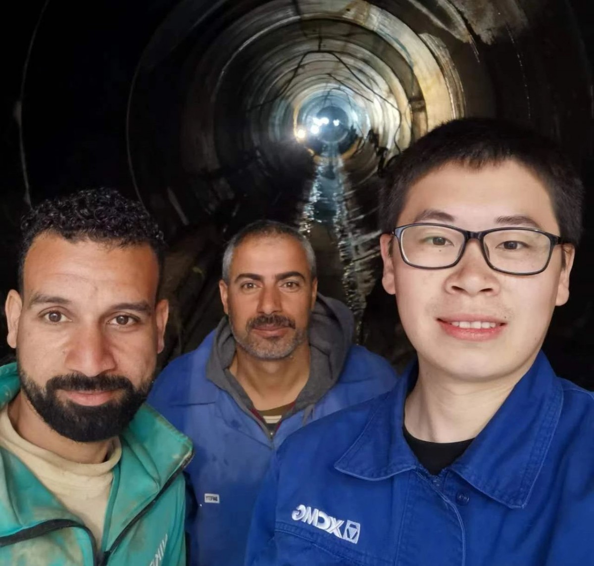 凌晨一点的泥泞管道中,李树欣半佝着身子,端着电脑,靠着手机灯光行走在仅1米多高的管道中,蹚过管道里的各种障碍物,李树欣才来到顶管机施工的机头处。来不及清理脸上、身上被迸溅的泥浆,他便联合服务人员查明问题所在,及时进行修复,并对机手进行了操作指导。