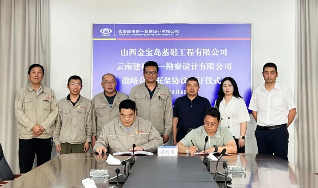 5月6日,山西金宝岛与云南建投第一勘察设计有限公司战略合作框架协议签字仪式在云南昆明举行。一勘司党委副书记、副董事长、总经理谢林冲与山西金宝岛董事长文哲分别代表双方进行签约。一勘司公司党委副书记、纪委书记、工会主席华娟,公司总工程师冯振甲等出席签约仪式。