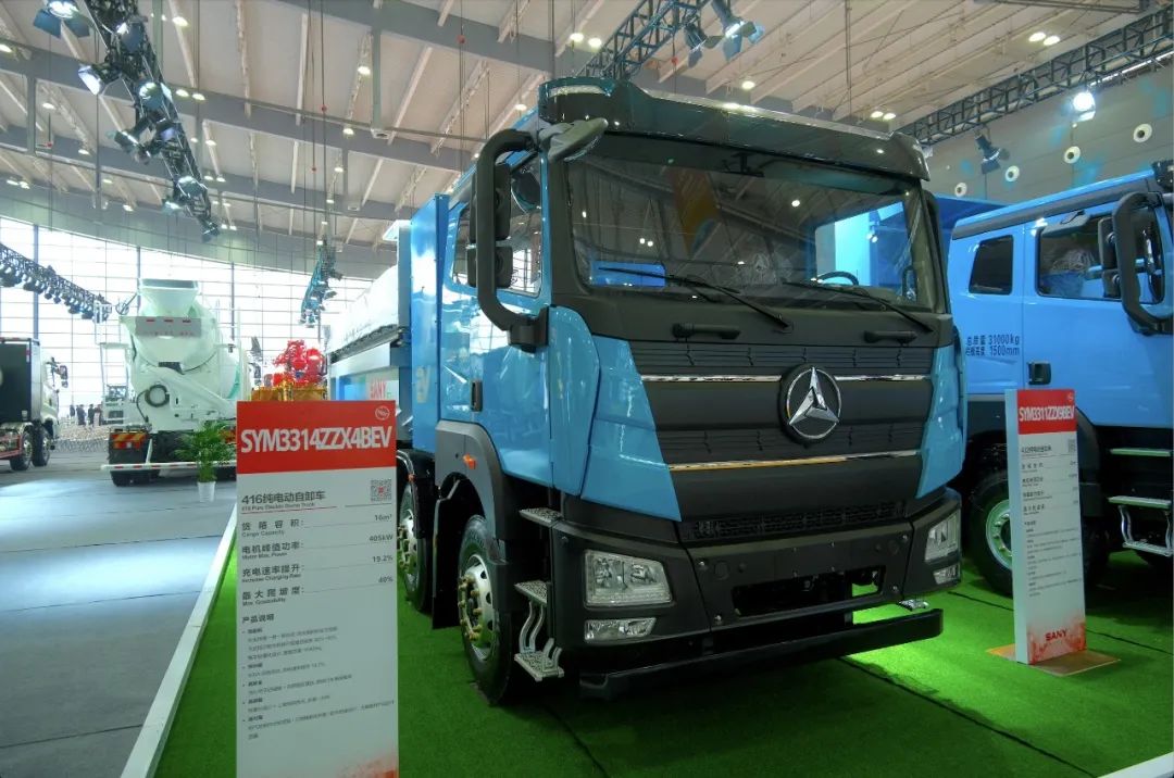 三一集团工程车辆事业部新推出的三款重点车型:混动424自卸车、432纯电动自卸车、416纯电动自卸车在本次展会中重磅亮相。